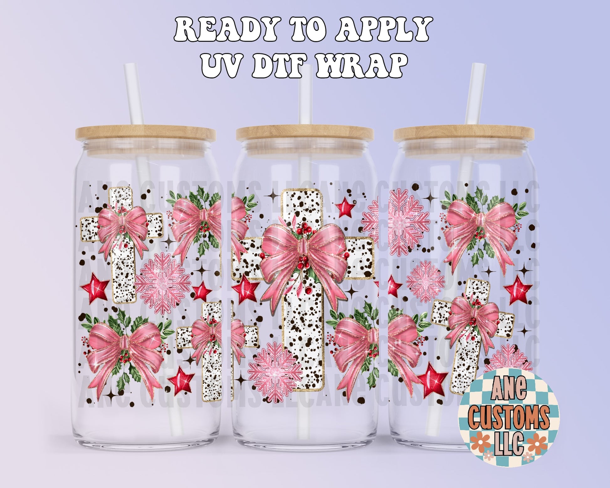 Pink bow & cross UVDTF WRAP